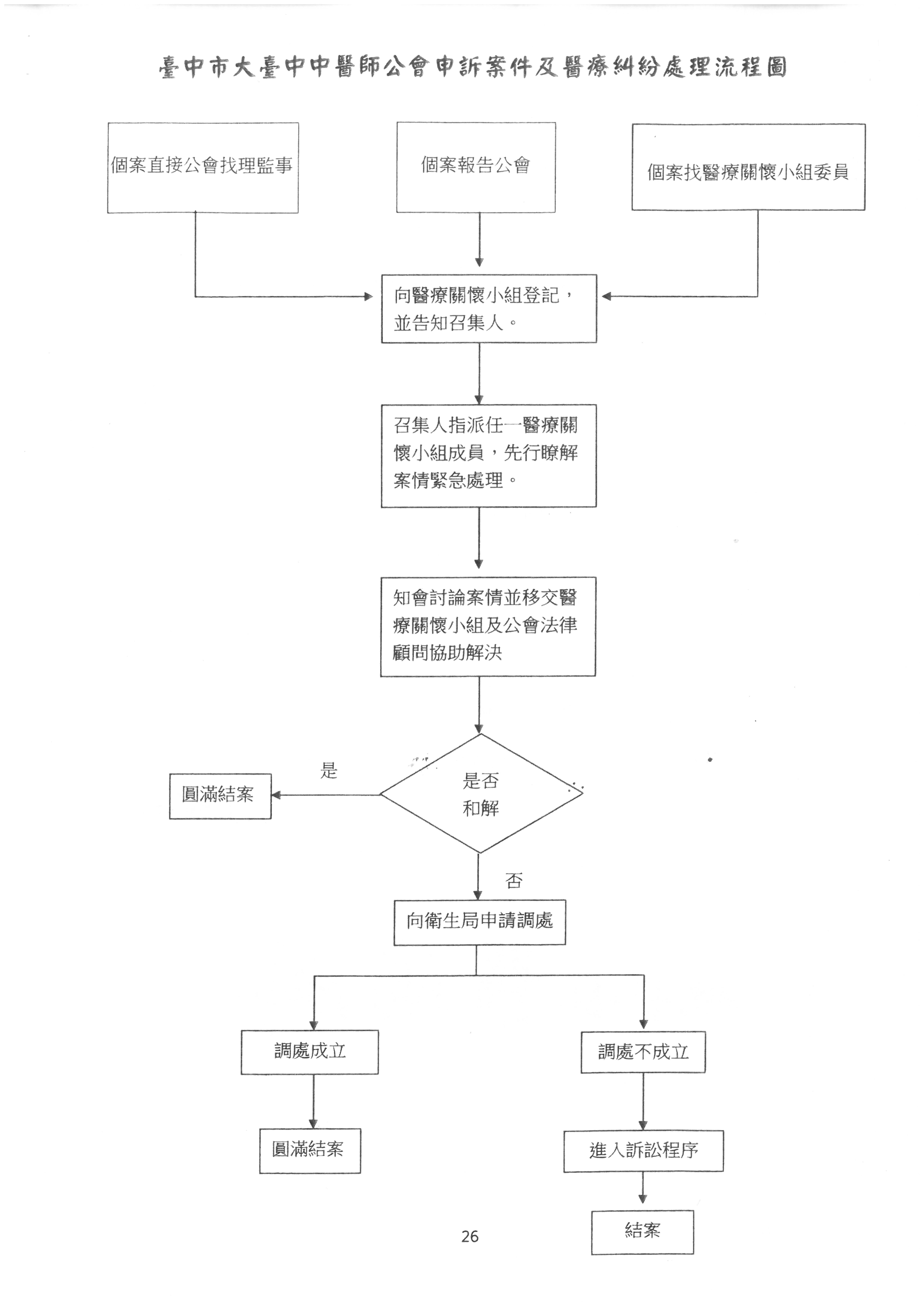 臺中市大臺中中醫師公會申訴案件及醫療糾紛處理流程